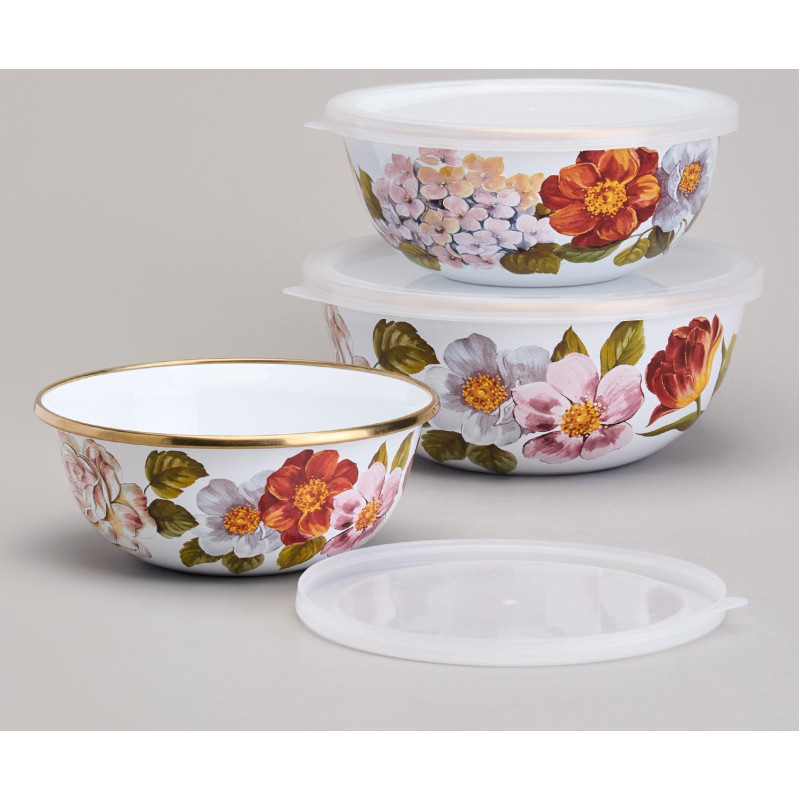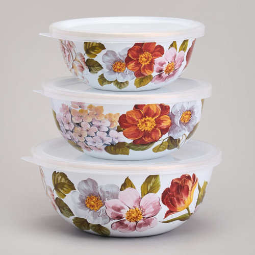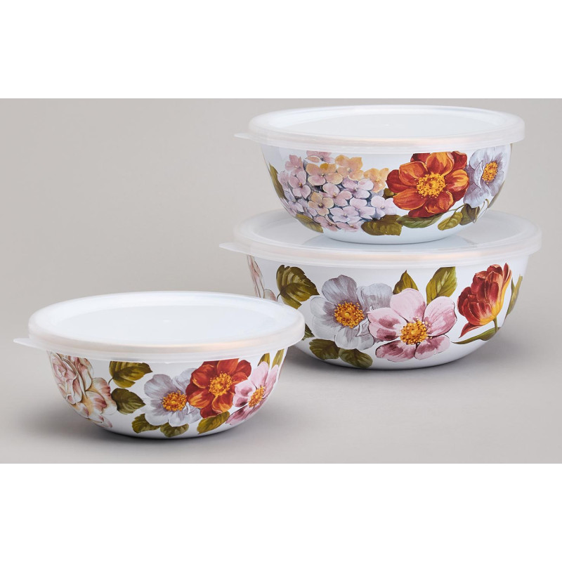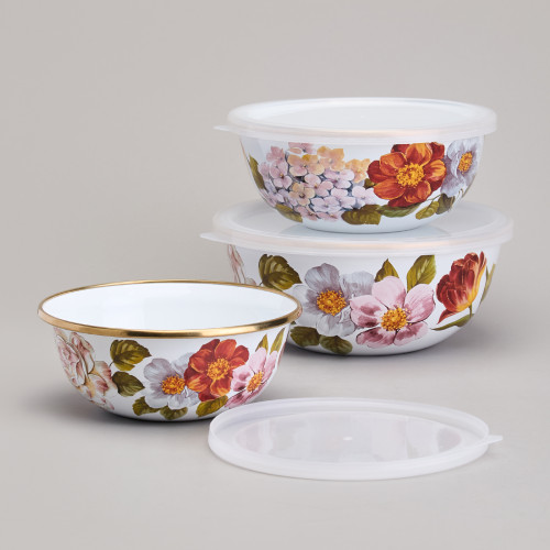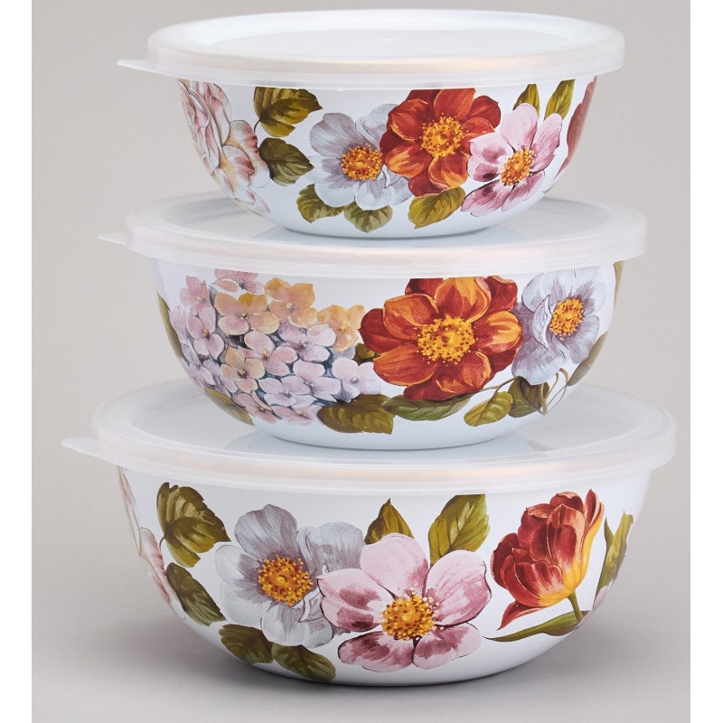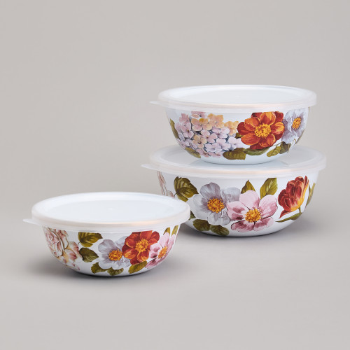 Набор мисок эмалированных с пластик.крышками, серия ФЛАНДРИЯ 6пр 0, 6/0, 9/1, 3л диа. 14/16/18см AGNESS 950-595