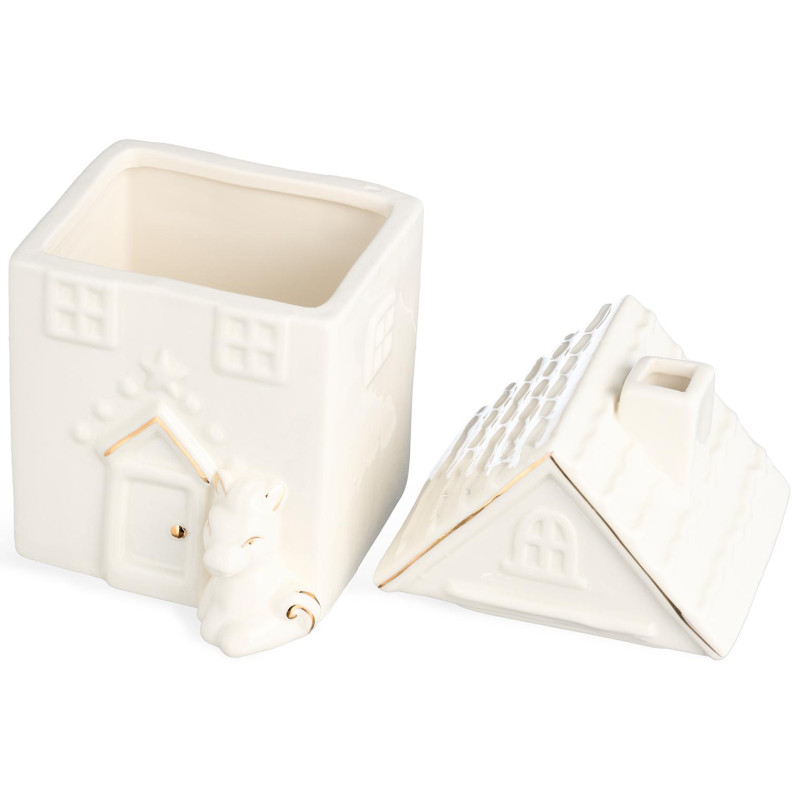 Пусть даже самый обычный сахар или кофе хранятся в атмосфере сказки! Эта изысканная фарфоровая банка в форме очаровательного домика с милым единорогом у входа — не просто ёмкость, а настоящий акцент вашего кухонного уголка. Благодаря качественному фарфору и продуманному дизайну она сохраняет свежест... →