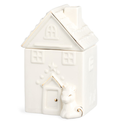 - Дизайн в виде миниатюрного домика с рельефными окнами, золотой каймой по крыше и дверью с звёздочкой — создаёт ощущение уюта и волшебства;
