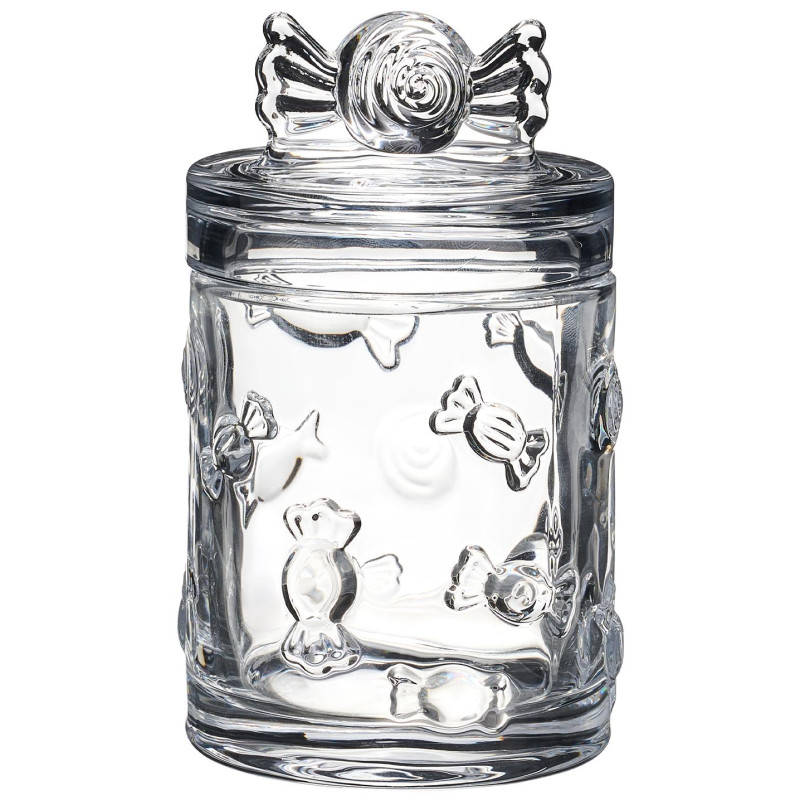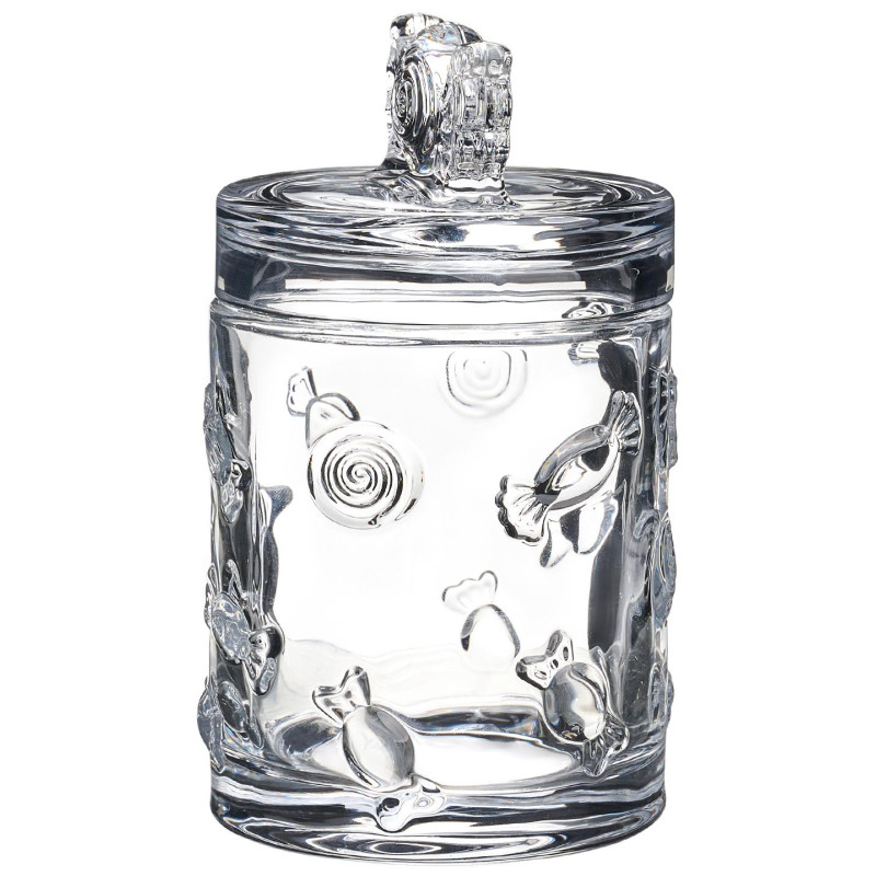 Эта ёмкость — настоящее произведение искусства, созданное из прозрачного стекла и украшенное уникальными рельефными узорами. Каждая линия, каждый элемент дизайна отражает историю и мастерство, воплощённые в этом предмете. Она не просто ёмкость для хранения — это настоящий декоративный аксессуар, который преобразит любое пространство.