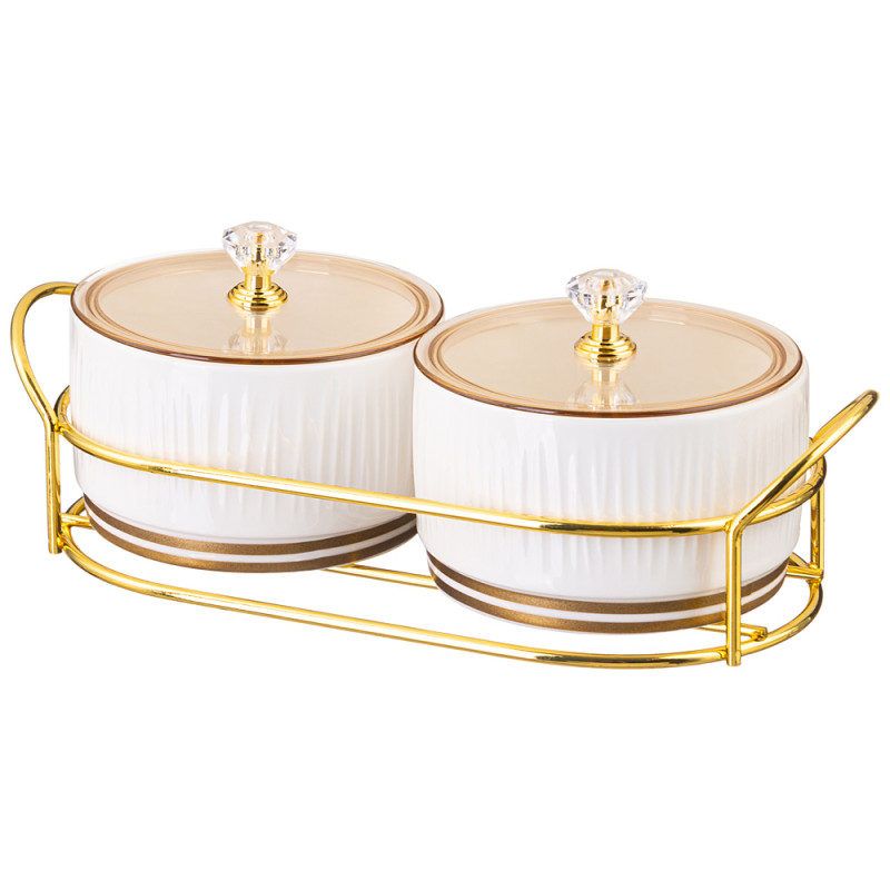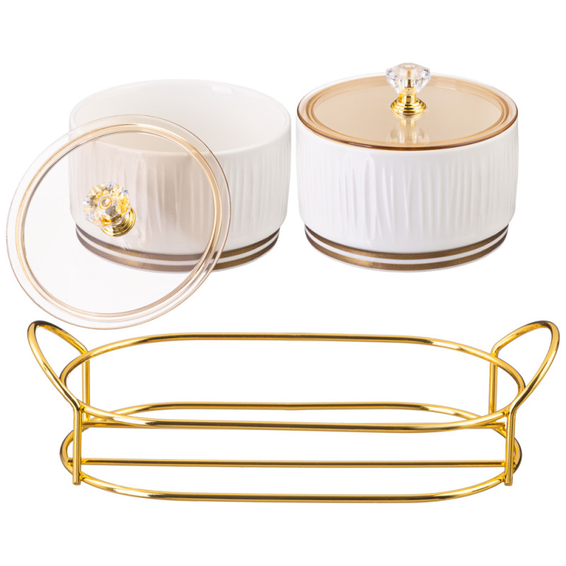 Набор банок " HERBAL" с пластик. крышкой 2 шт. 230 мл на металл. подставке (кор=24наб.) LEFARD 42-484