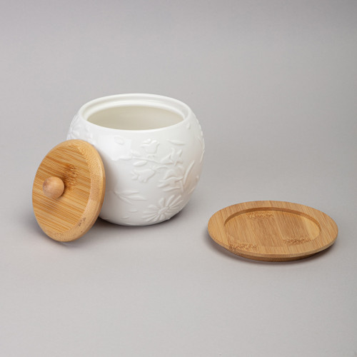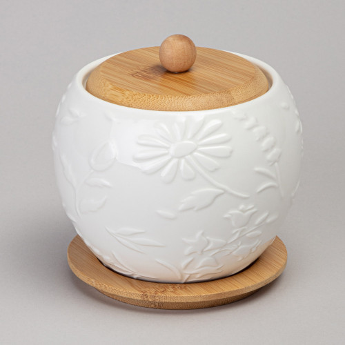 Банка "FLOWERS STORY" с дерев. крышкой на дер. подставке 12*11 см 550 мл LEFARD 474-246