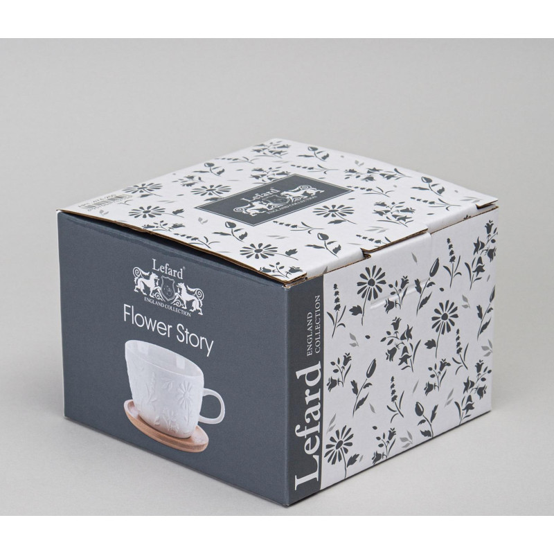 Чайная пара "FLOWERS STORY" с дерев. блюдцем 450 мл LEFARD 474-250
