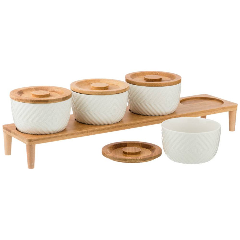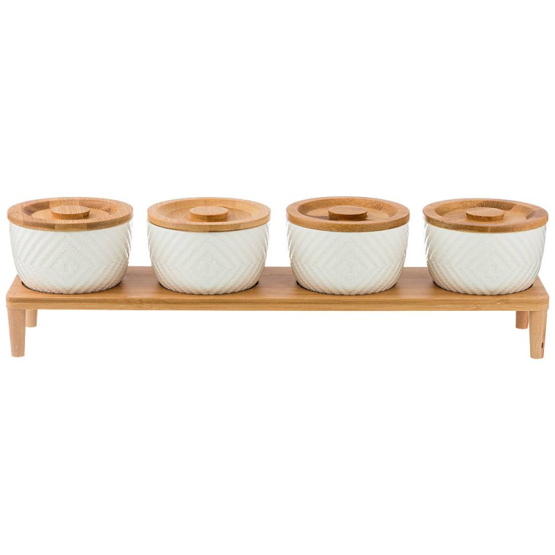 Набор из 4-х банок для сыпучих продуктов "NATIVE" 250 мл. на подставке 41*10 см. в=11 см.(кор=9наб.) LEFARD 587-139