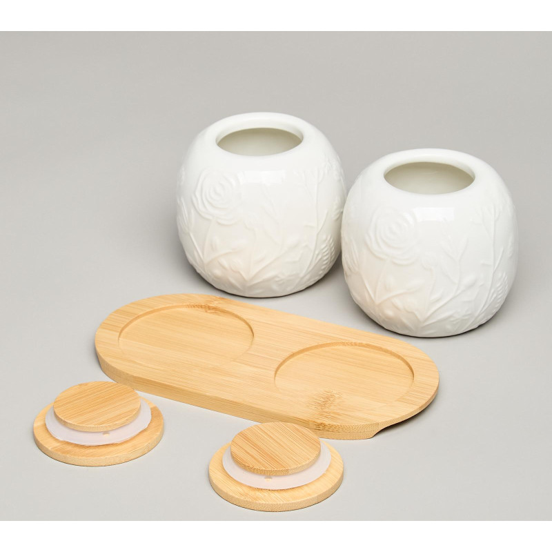 Набор банок "MEADOW" с дер.крышкой на дер. подставке 2 шт. 19,5*9,5 см 400 мл LEFARD 587-210