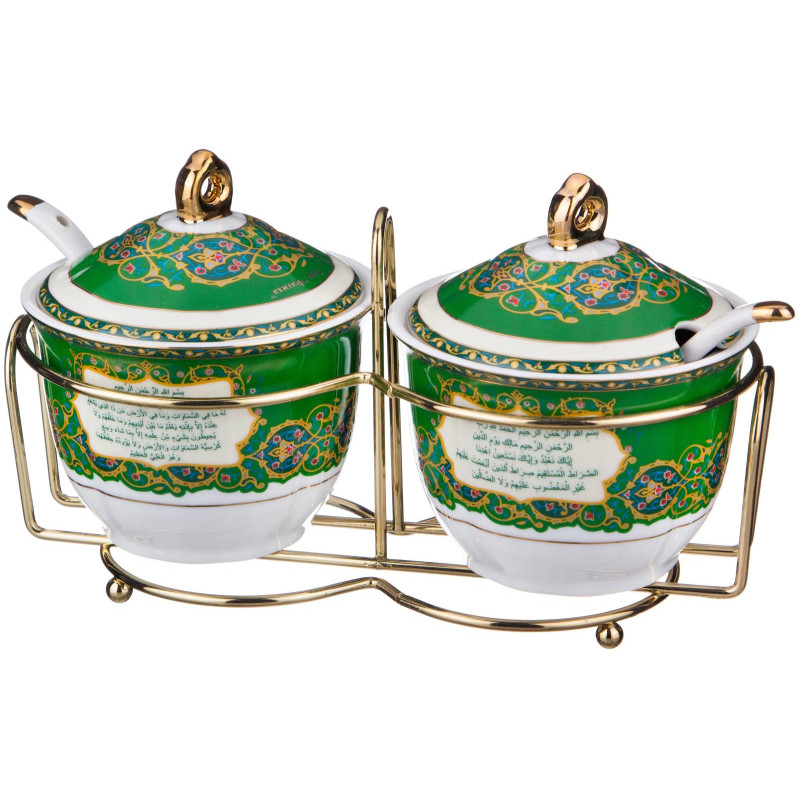 ТМ LEFARD представляет эксклюзивную коллекцию посуды «Суры из Корана». Кувшины, чайники, сахарницы, кружки, чайные пары, декоративные тарелки и другие предметы выполнены из высококачественного тонкостенного фарфора. Восточный орнамент, небольшие отрывки Сур из Корана на классическом арабском и русском языках с отделкой золотом украшают изделия. Это прекрасный мусульманский подарок, всегда нужный и теплый. Относитесь к нему бережно и с почтением. Посуду коллекции можно использовать как в повседневной жизни, так и на торжественном приеме. Не рекомендуется мыть в посудомоечной машине и использовать в микроволновой печи.