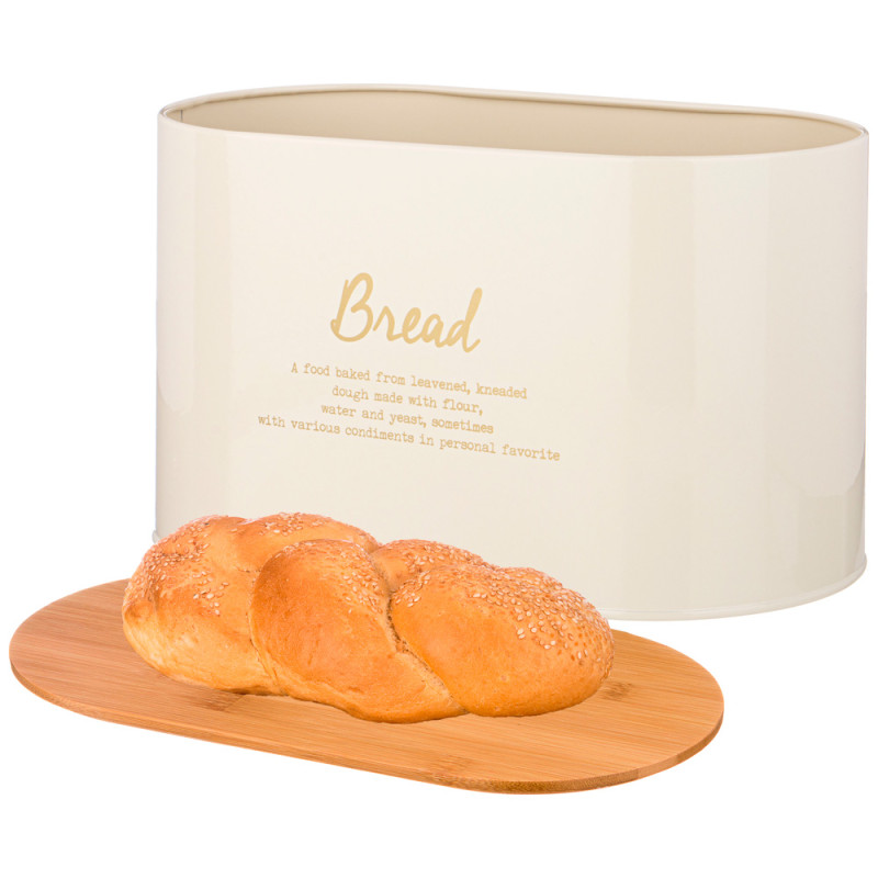 Хлебница оснащена крышкой-доской, на которой можно сразу нарезать хлеб.