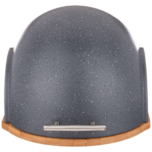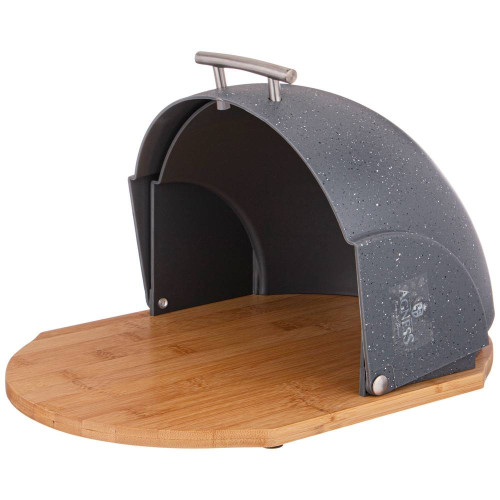 Хлебница имеет деревянное основание, на котором можно сразу нарезать хлеб.