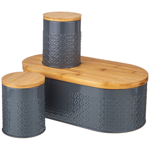 Хлебница 33,8х18х12см с 2-мя банками д/сып. прод. d10см, h11см, grey AGNESS 938-077