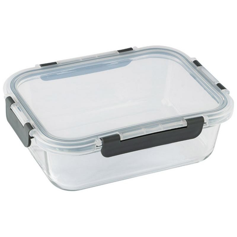 1.5л(235х177х74мм), жаропрочное стекло с пластиковой крышкой со съёмными защёлками