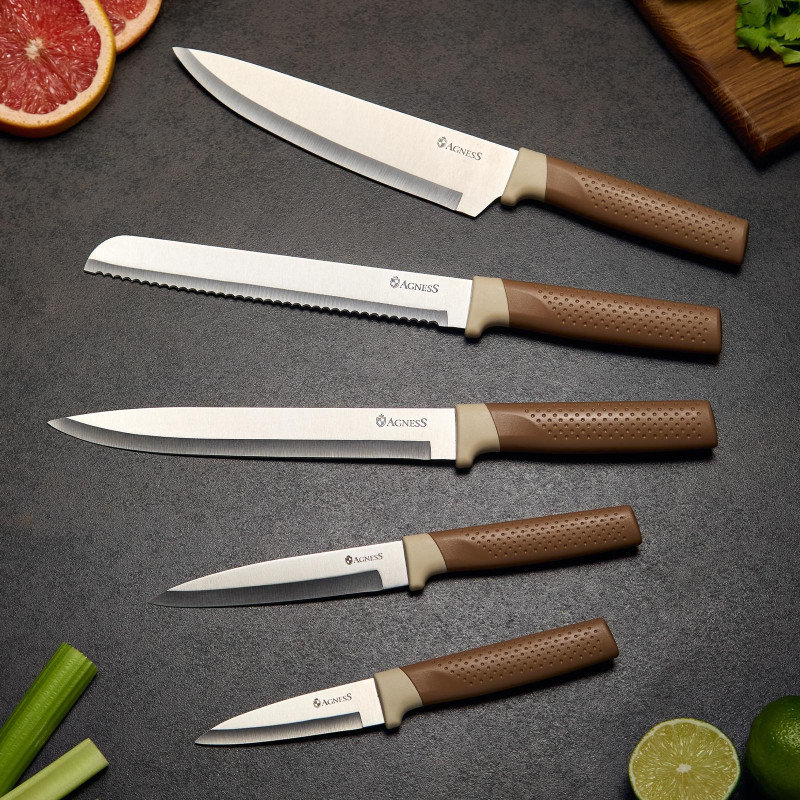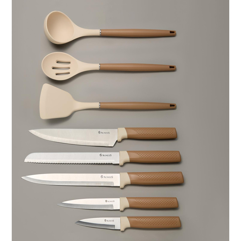 Набор из 9пр: 5 ножей, половник, лопатка и шумовка, вращающаяся подставка AGNESS 671-204