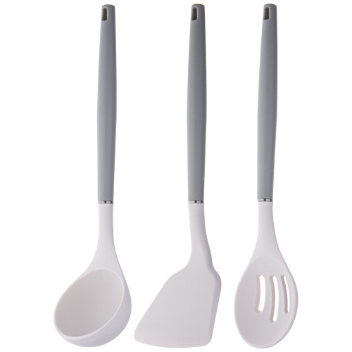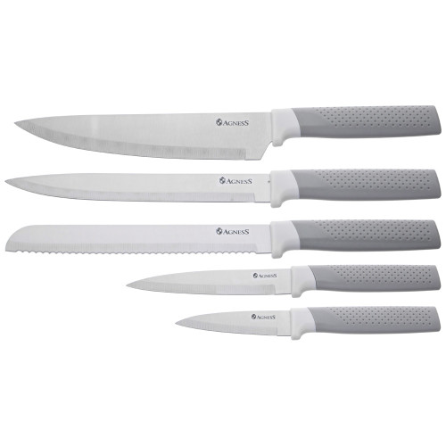 Набор из 9пр: 5 ножей, половник, лопатка и шумовка, вращающаяся подставка, цвет: серый AGNESS 671-211
