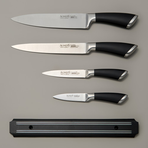 Набор ножей 5 пр.с магнитным держателем и ручкой из нерж.стали AGNESS 911-045