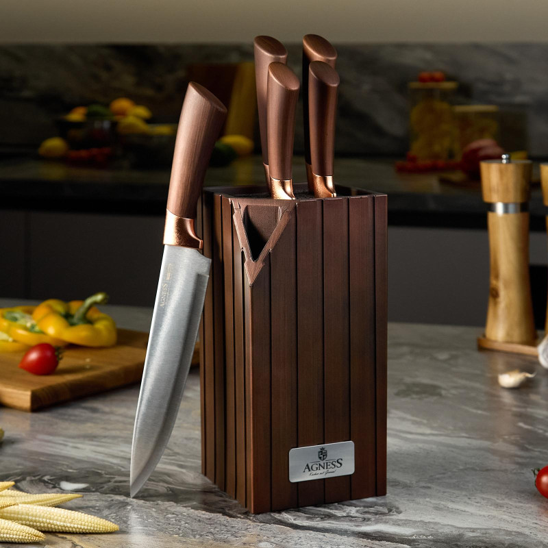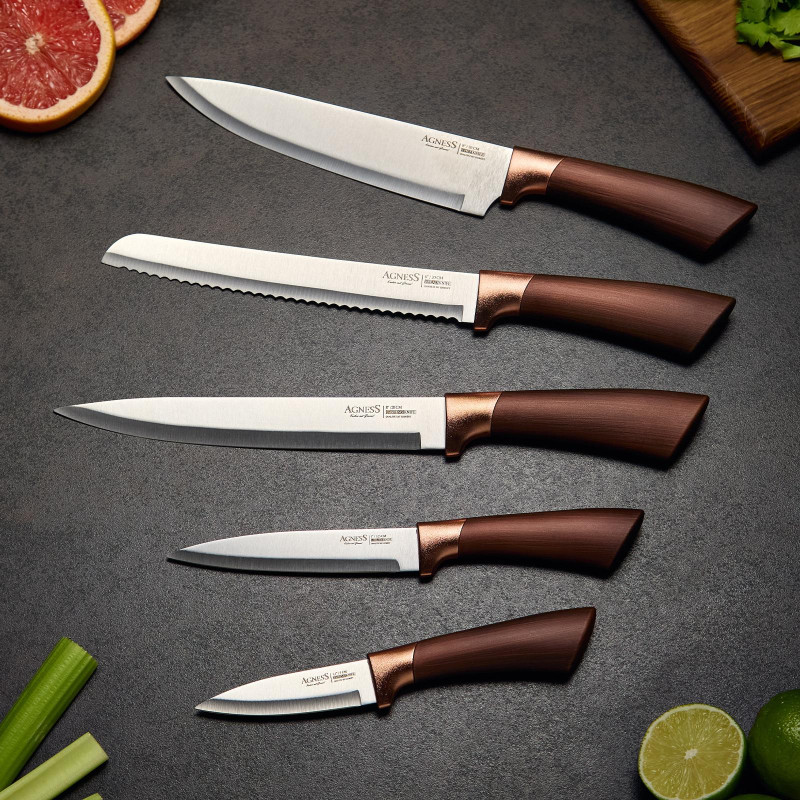 Нож - главный инструмент на кухне, а вернее ножи, т.к. даже самый лучший нож не сможет справиться со всем многообразием задач. Выбирая набор ножей AGNESS - Вы приобретаете комплект самых необходимых и чаще всего используемых ножей. Преимущества ножей AGNESS: