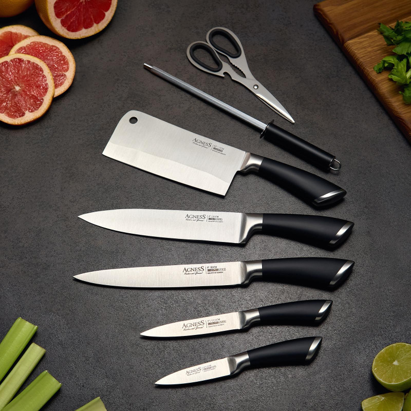 Нож - главный инструмент на кухне, а вернее ножи, т.к. даже самый лучший нож не сможет справиться со всем многообразием задач. Выбирая набор ножей AGNESS - Вы приобретаете комплект самых необходимых и чаще всего используемых ножей. Преимущества ножей AGNESS: