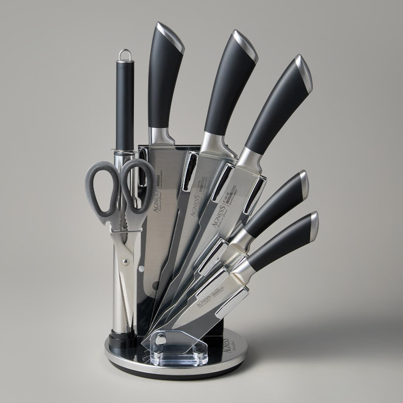 Набор ножей нжс на пластиковой вращающейся подставке 8 пр. (кор=6набор.) AGNESS 911-500