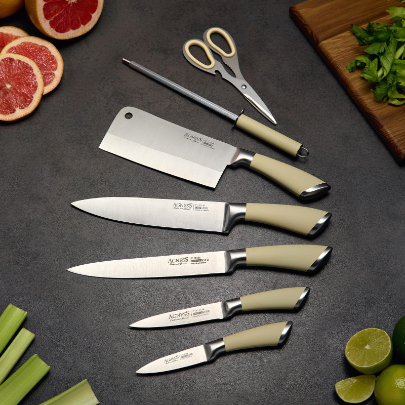 Нож - главный инструмент на кухне, а вернее ножи, т.к. даже самый лучший нож не сможет справиться со всем многообразием задач. Выбирая набор ножей AGNESS - Вы приобретаете комплект самых необходимых и чаще всего используемых ножей. Преимущества ножей AGNESS:
