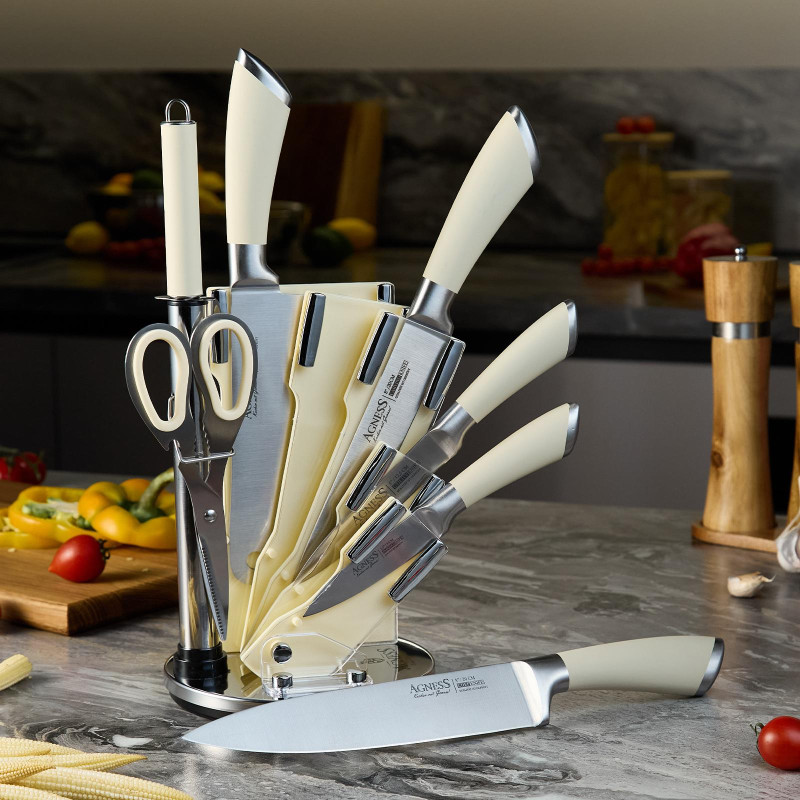 Набор ножей нжс на пластиковой вращающейся подставке 8 пр. (кор=6набор.) AGNESS 911-502