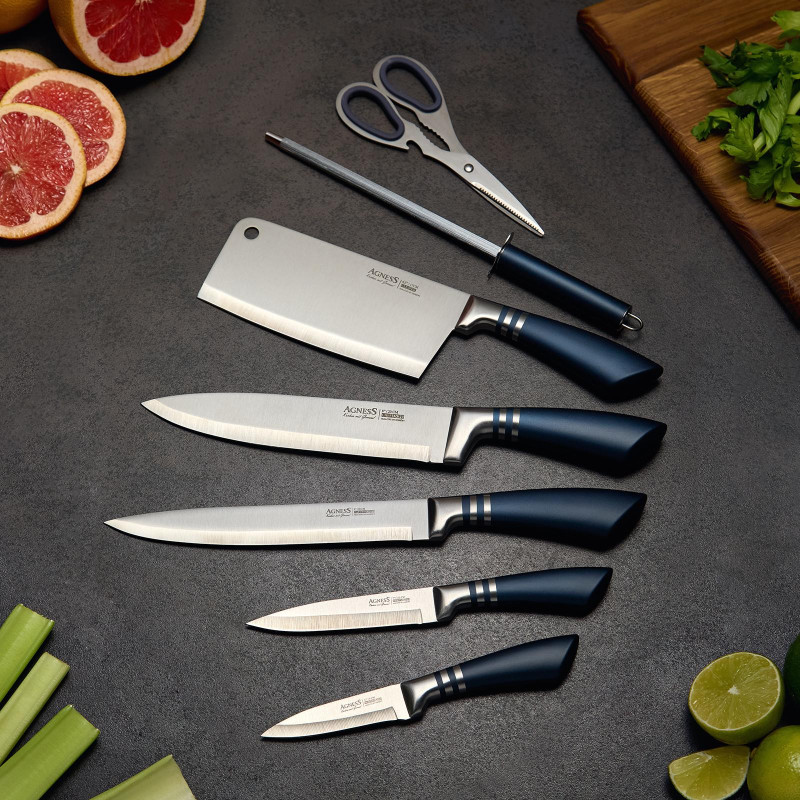 Нож - главный инструмент на кухне, а вернее ножи, т.к. даже самый лучший нож не сможет справиться со всем многообразием задач. Выбирая набор ножей AGNESS - Вы приобретаете комплект самых необходимых и чаще всего используемых ножей. Преимущества ножей AGNESS: