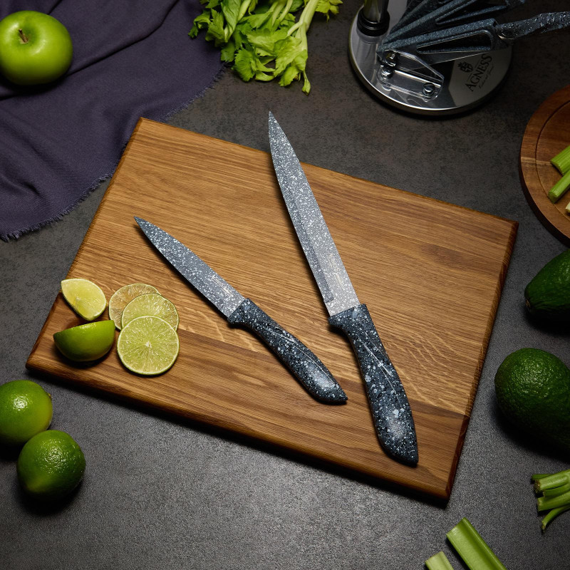 Нож - главный инструмент на кухне, а вернее ножи, т.к. даже самый лучший нож не сможет справиться со всем многообразием задач. Выбирая набор ножей AGNESS - Вы приобретаете комплект самых необходимых и чаще всего используемых ножей. Преимущества ножей AGNESS: