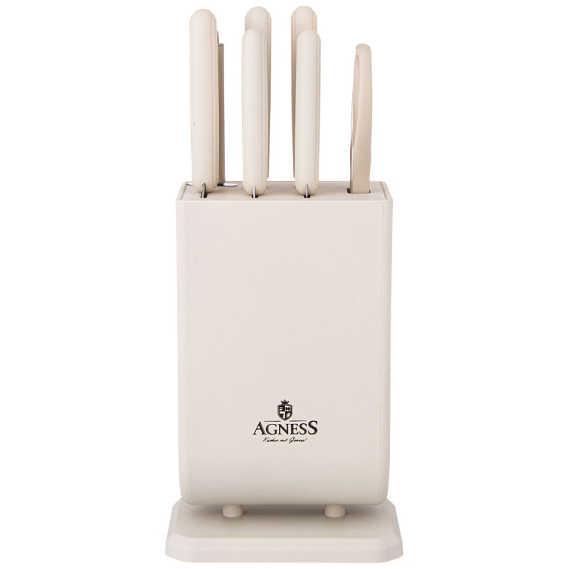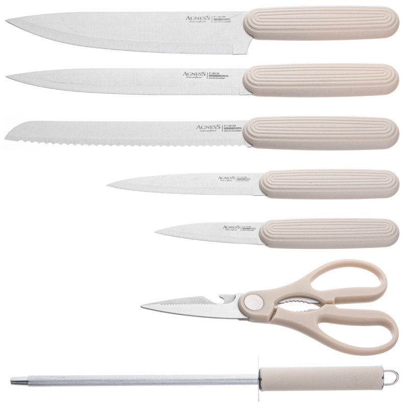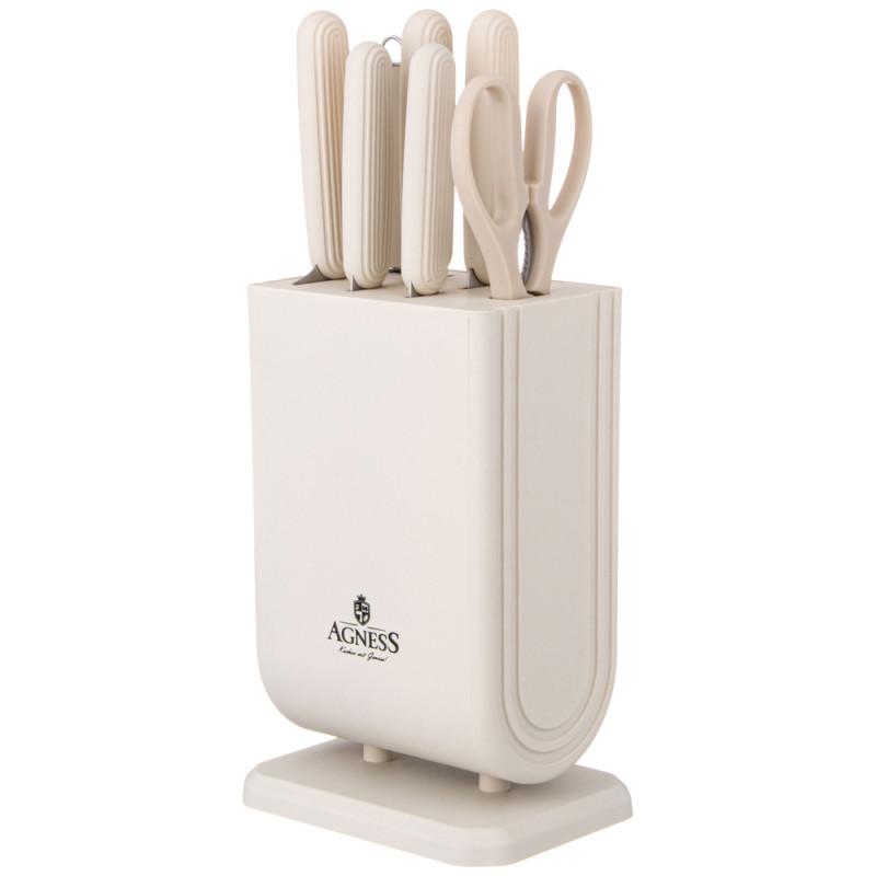 Набор ножей с ножницами и мусатом на пластиковой подставке, 8 предметов AGNESS 911-740