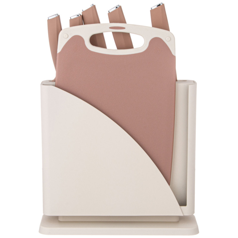 ● Состав набора: Нож поварской 20см, Нож для хлеба 20см, Нож для нарезки 20см, Нож универсальный 12,5см, Нож для чистки овощей и фруктов, 9см, Пластиковая разделочная доска, Пластиковая подставка для безопасного хранения ножей