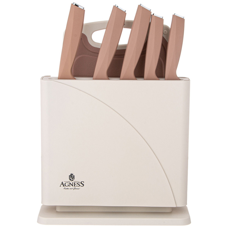 Набор ножей нжс на пластиковой подставке и разделочная доска, 7 пр. AGNESS 911-764