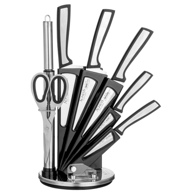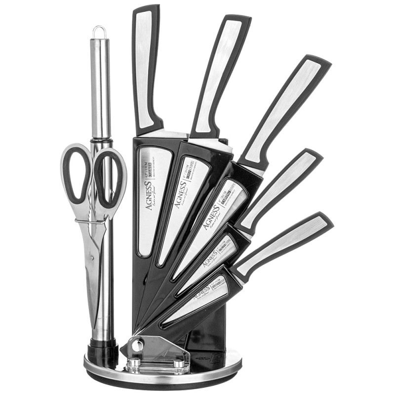 Набор ножей с ножницами и мусатом на пластиковой подставке, 8 предметов AGNESS 911-769