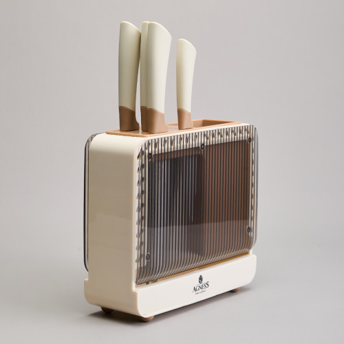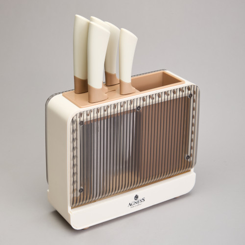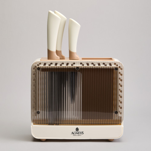 ● Удобная пластиковая подставка для хранения ножей и кухонных принадлежностей.