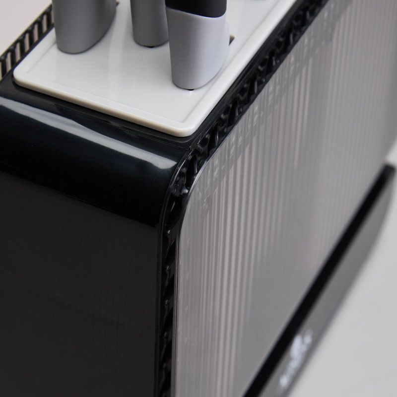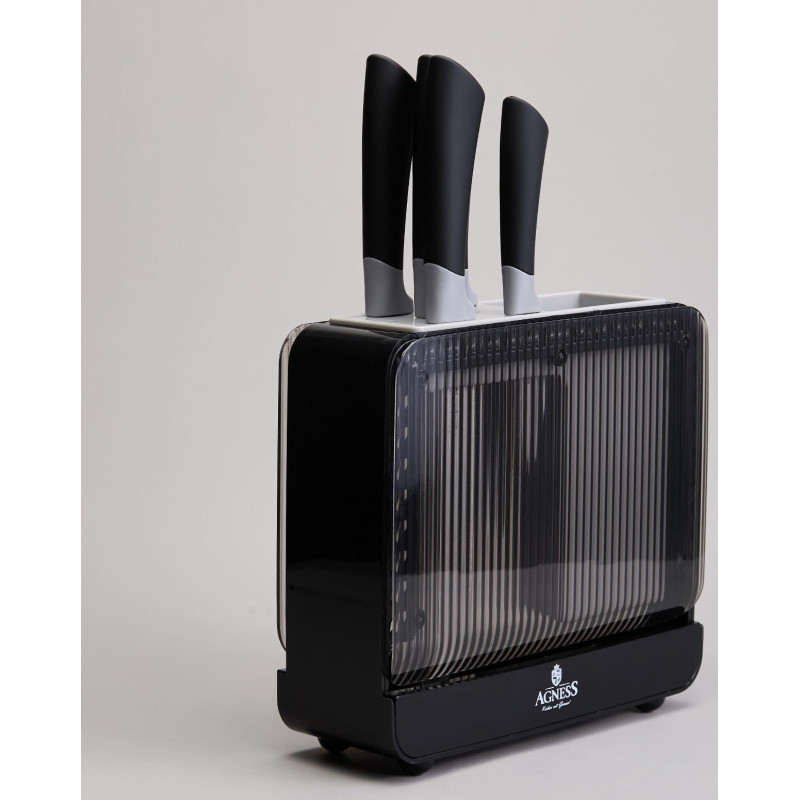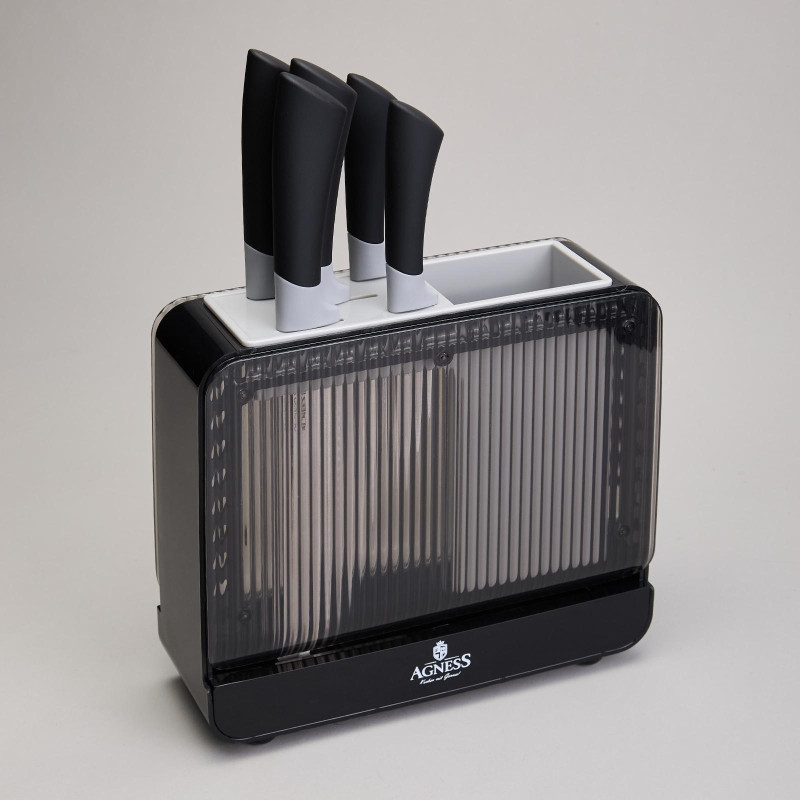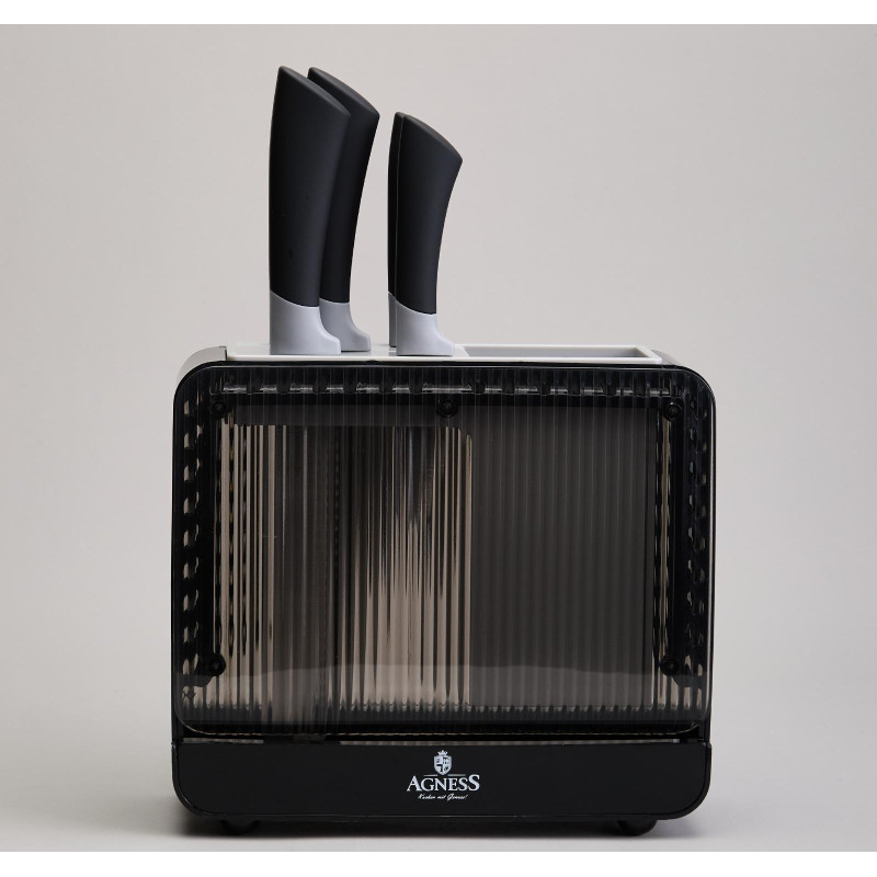 ● Удобная пластиковая подставка для хранения ножей и кухонных принадлежностей.