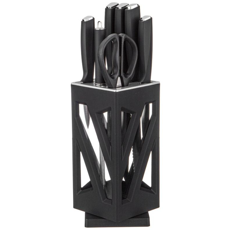 8предм, 5 ножей - поварской 20см, хлебный 20см, д/нарезки 20см, универсальный 12.5см, овощной 9см, мусат, ножницы д/птицы, подставка