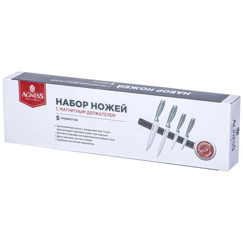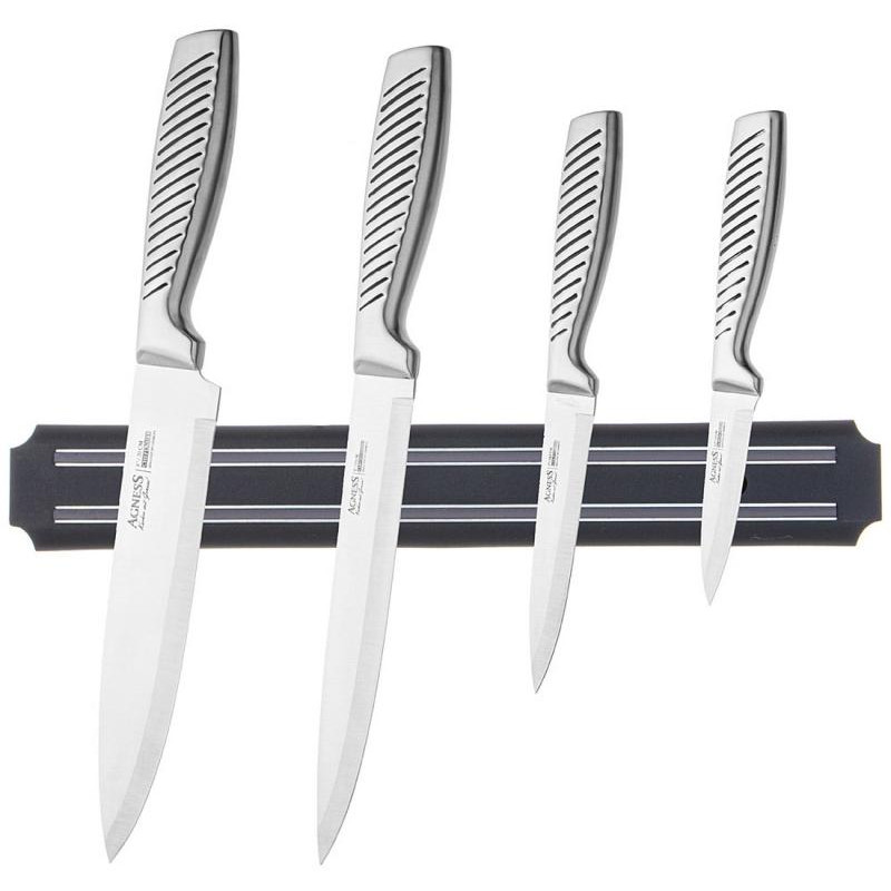 911-767 Набор ножей Agness с магнитным держателем и ручкой из нерж.стали, 5пр