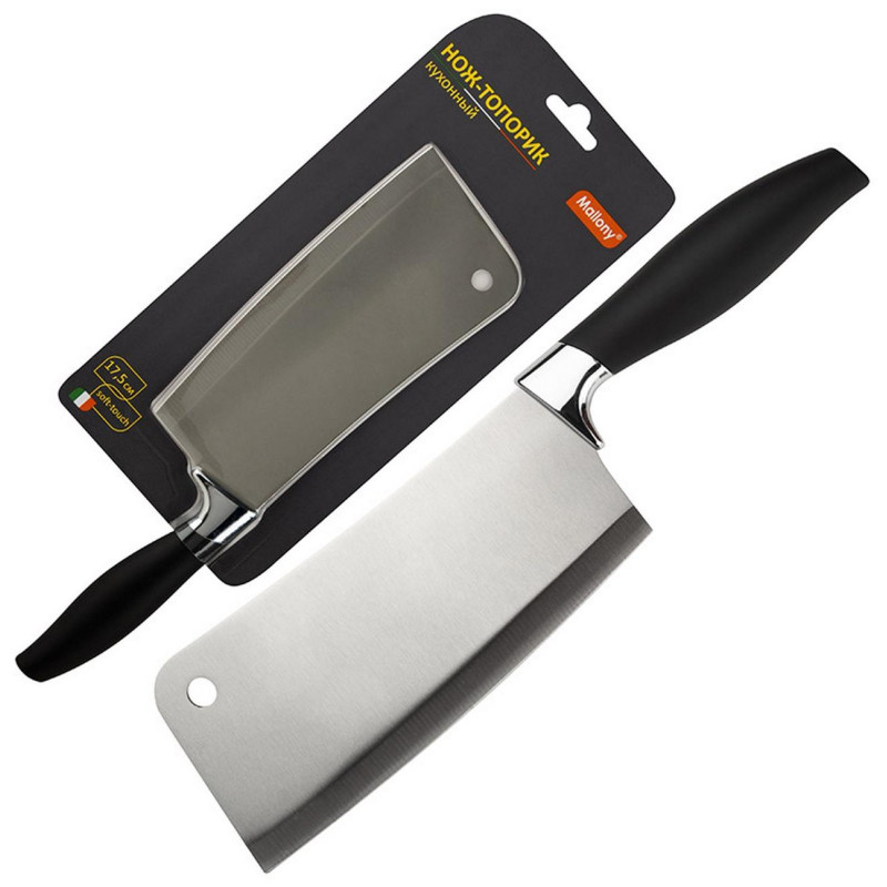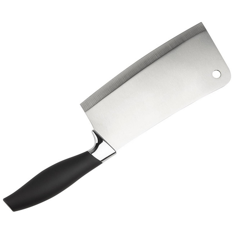 Матовое покрытие лезвия. Удобная рукоятка с покрытием soft-touch из термопластичной резины. Размер: 30x8см. Длина лезвия: 17.5см. Толщина стали: 1.8мм. Материал: нержавеющая сталь (2CR14), ТПР, хромированная АБС пластмасса.... →
