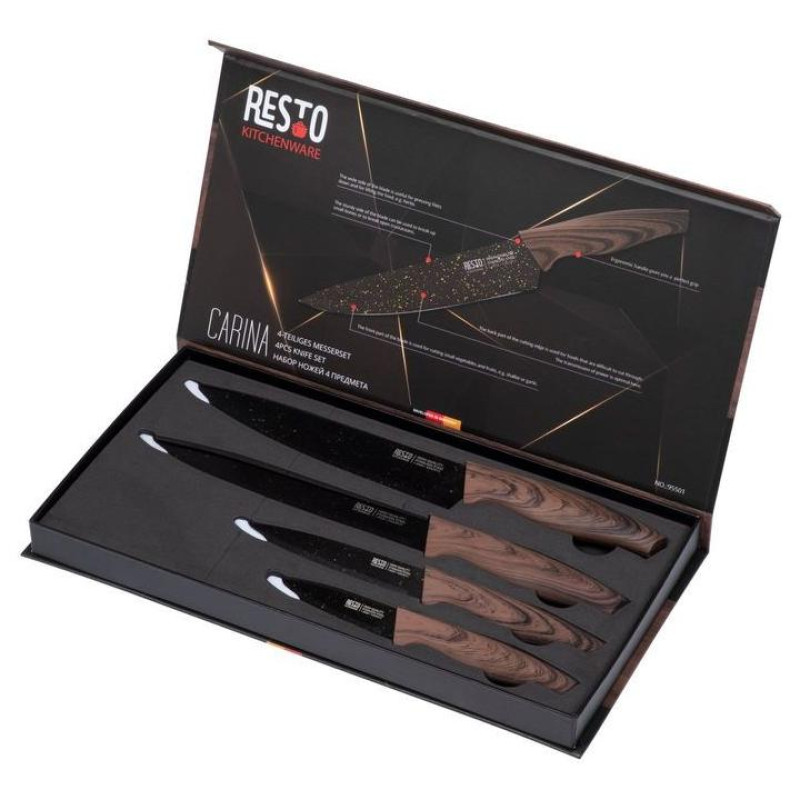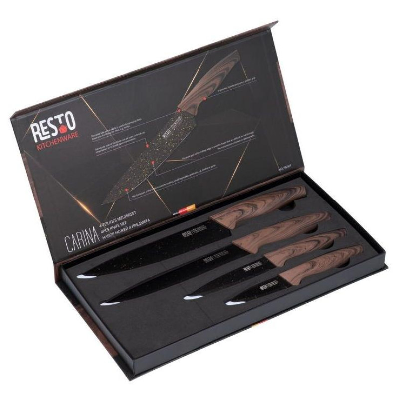 4 предмета, нерж.сталь, ручки пластик с покрытием Soft-touch, стилизованные под дерево, ножи (поварской, разделочный, универсальный, д/овощей)