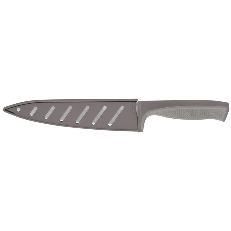 Поварской с чехлом, 20см, ширина 4.5мм, толщина1.8мм, лезвие коррозионная сталь, ручка коричневый ударопрочный пластик/силикон, в комплекте чехол из пластика, рекомендуется ручная мойка, упаковка картон и п/э пакет