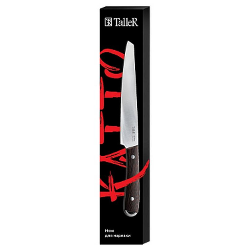 Лезвие-длина 20.0см, толщина лезвия 2.3мм, материал лезвия-нерж.сталь, ручка-дерево, рекомендуется ручная мойка, упаковка-цветная коробка