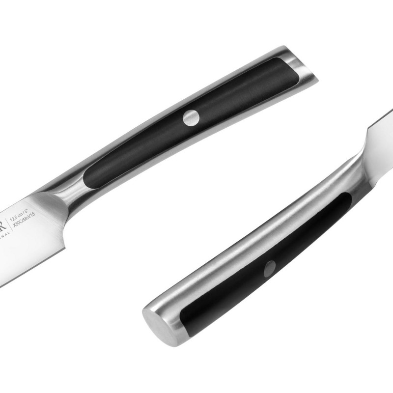 Нож универсальный, длина лезвия 12, 5см, толщина лезвия 1, 8мм, материал лезвия-нержавеющая сталь, материал рукояти-ударопрочный пластик, рекомендуется ручная мойка
