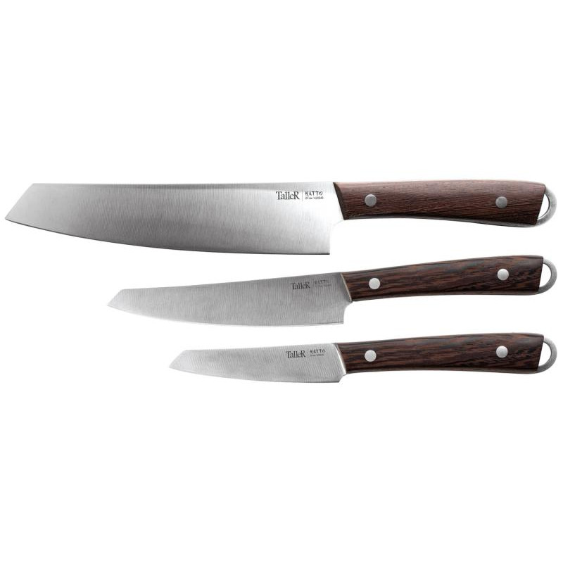 Набор ножей Katto, 3 предметов, лезвия- нерж.сталь, ручка - дерево венге, состав: нож поварской – 1 шт, длина лезвия 20.0 см, толщина лезвия 2.3 мм, нож универсальный – 1 шт, длина лезвия 12.5 см, толщина лезвия 1.6 мм, нож для чистки – 1 шт, длина лезвия 9 см, толщина лезвия 1.6 мм