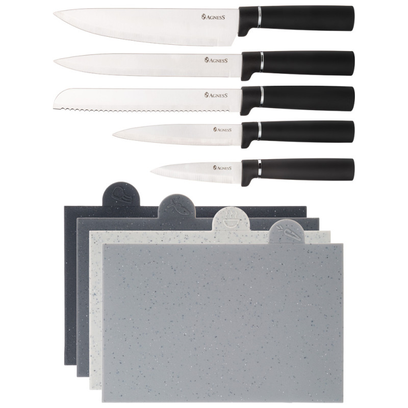 Набор из 10пр: 5 ножей, 4 доски и подставка, цвет: черный мрамор AGNESS 671-203