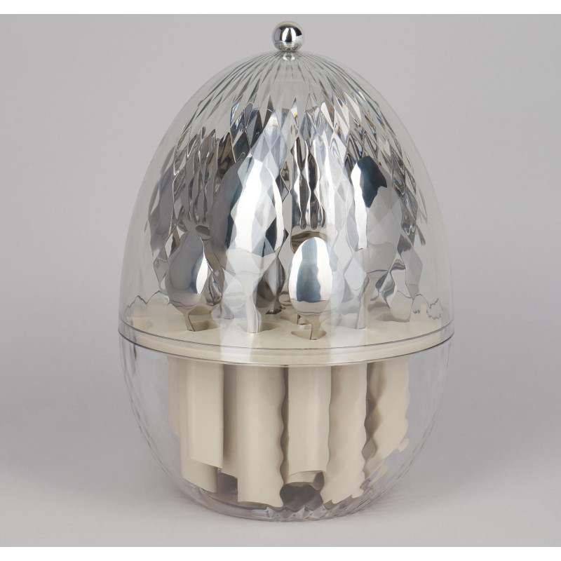 Премиальный набор столовых приборов на 6 персон. Высокое качество обеспечит длительный срок службы и надежность в эксплуатации. Безупречный внешний вид, эргономичность, удобная форма столовых приборов подойдет для торжественной сервировки. Удобная вращающаяся подставка в форме яйца позволит хранить все предметы компактно, легко и доступно. Сделайте сервировку по-настоящему выдающейся!