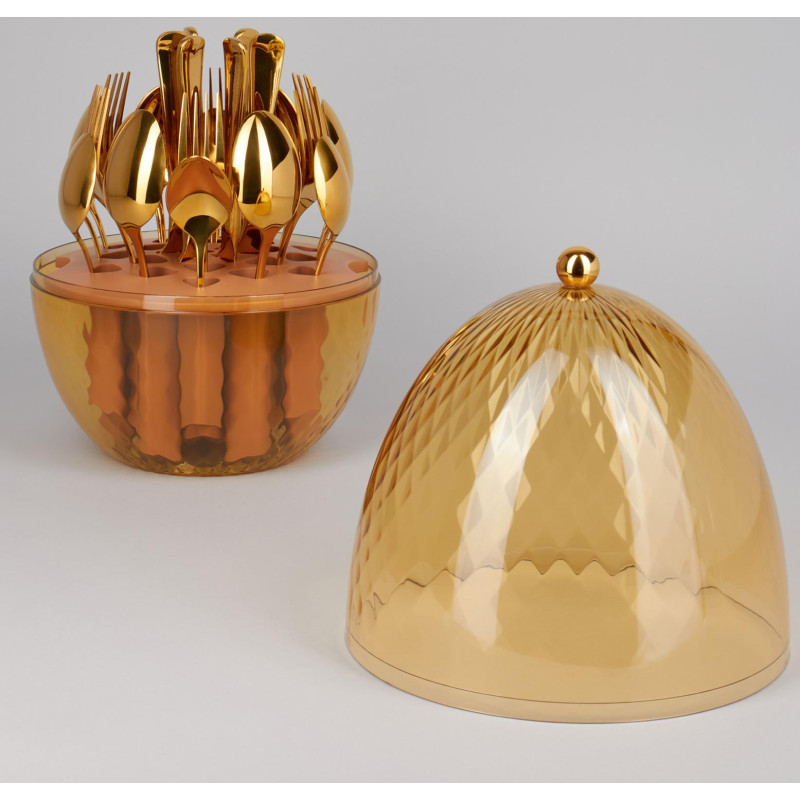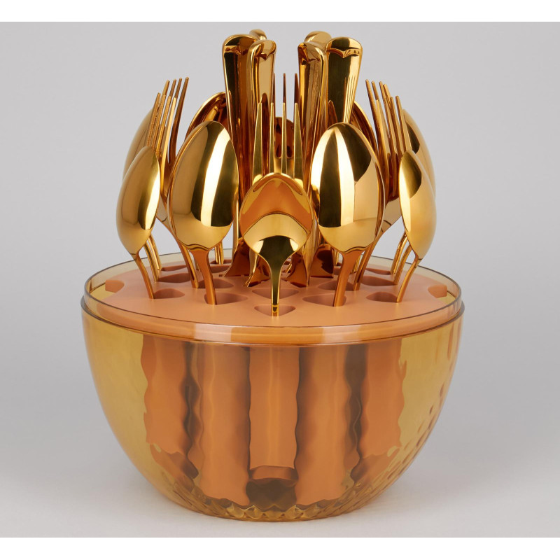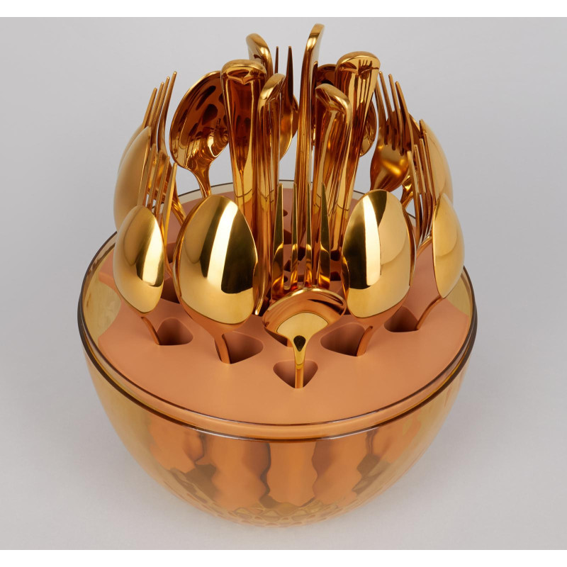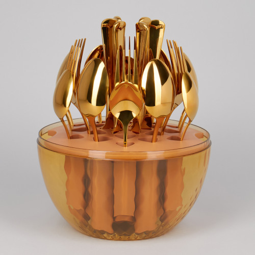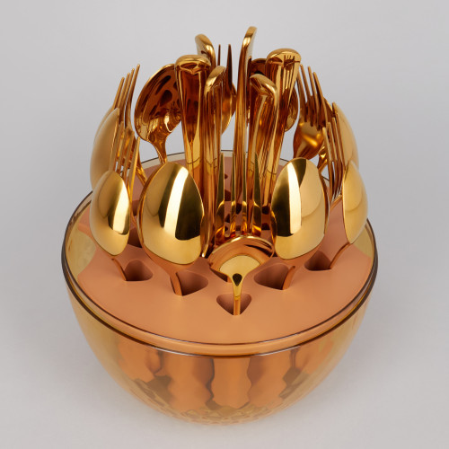 Премиальный набор столовых приборов на 6 персон. Высокое качество обеспечит длительный срок службы и надежность в эксплуатации. Безупречный внешний вид, эргономичность, удобная форма столовых приборов подойдет для торжественной сервировки. Удобная вращающаяся подставка в форме яйца позволит хранить все предметы компактно, легко и доступно. Сделайте сервировку по-настоящему выдающейся!
