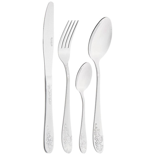 Набор состоиз из 24пр. - 6 столовых ножей, 6 столовых ложек, 6 столовых вилок, 6 чайных ложек и упакован в подарочную упаковку.