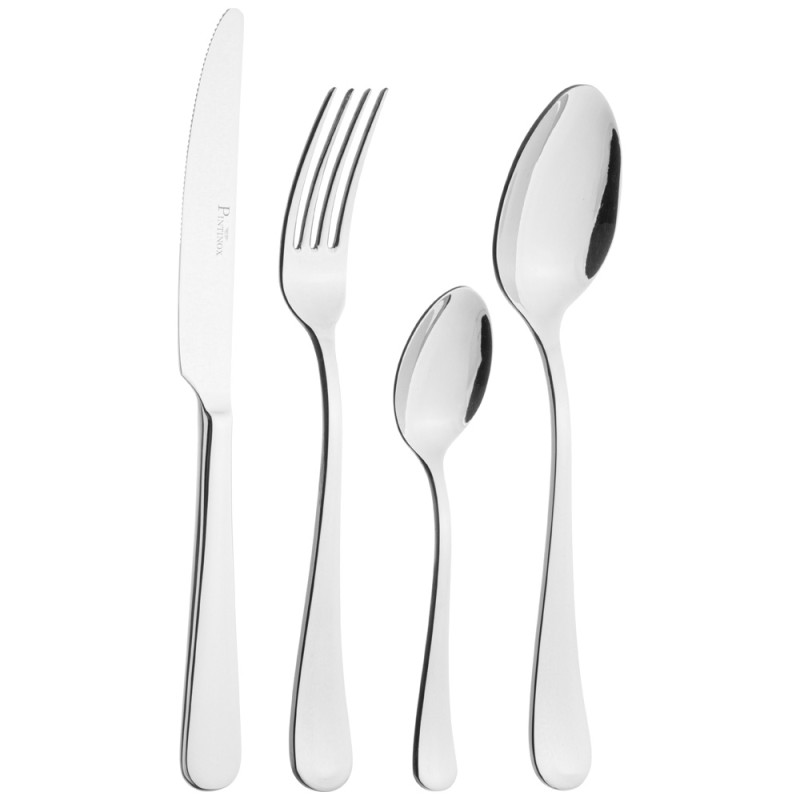 Столовые приборы Pintinox изготовлены из хромо-никелевой стали 18/10 (% хром-никель). Эта сталь не содержит вредных примесей и устойчива к коррозии. Столовые приборы Pintinox идеально отполированы, что позволяет сохранять длительный срок эксплуатации. Для продления срока службы ваших столовых приборов, необходимо уделить внимание уходу за ними: после использования столовые приборы обязательно надо помыть и протереть насухо. Продукция Pintinox отличается безупречностью исполнения, высоким качеством изготовления, оригинальностью и неповторимостью дизайна.