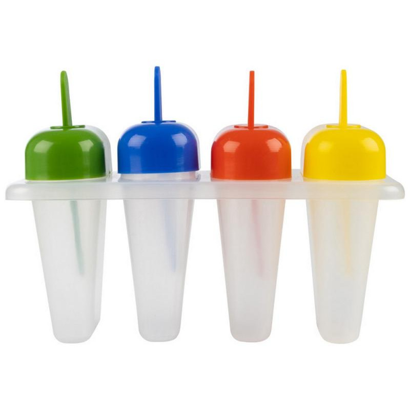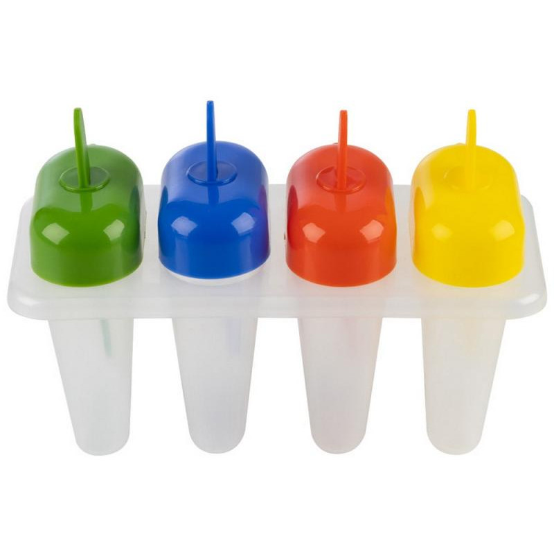 4 ячейки, 16х7х11см, 65мл, пластик, обдайте форму теплой водой перед тем, как достать из нее готовое мороженое, это упростит задачу