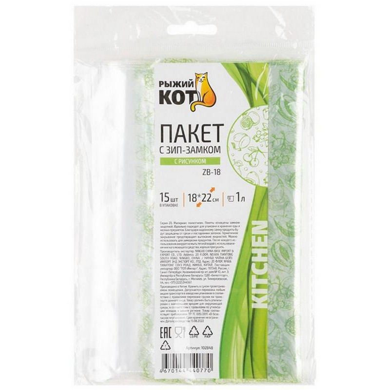102848 Пакет с ЗИП-замком с рисунком, ZB-18 'Рыжий кот' (18х22см 1л, 15шт/уп)