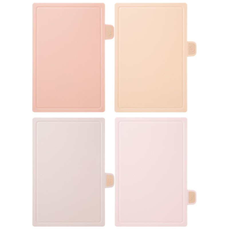 Набор разделочных досок состоит из четырёх разноцветных досок , размещенных в оригинальной подставке, что делает набор не только многофункциональным, но и очень удобным для хранения на кухне. Цветные разделочные доски выполнены из прочного пищевого пластика и могут использоваться для нарезки сырого мяса и рыбы, овощей, фруктов, варенных и копченых продуктов, хлеба и т.д.Небольшой выступающий "ярлычок", имеющийся на каждой из досок, позволяет с легкостью извлекать их из подставки, а также служит удобной ручкой.Набор станет незаменимым и полезным аксессуаром на вашей кухне, который к тому же и стильно дополнит кухонный интерьер. Рекомендована ручная мойка.