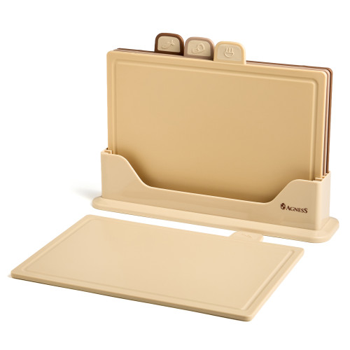 Набор из 4 досок на подставке, цвет: бежевый AGNESS 671-216