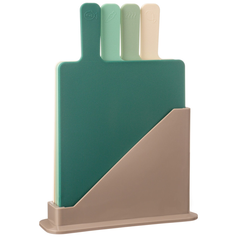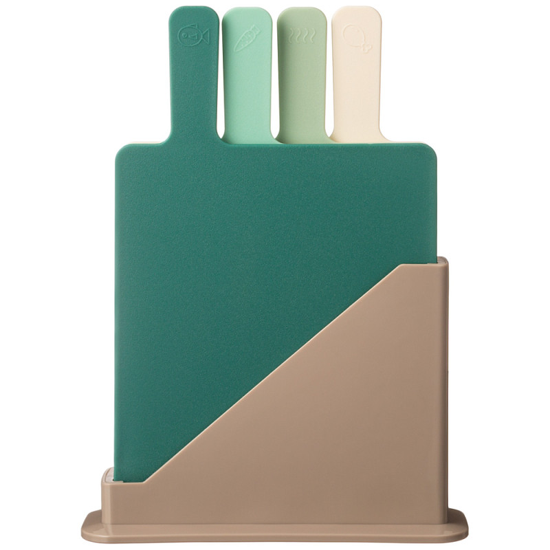 Набор кухонных разделочных досок в подставке, 4 штуки - стильный и практичный аксессуар, который оценит каждая хозяйка. Изделия пластиковые, с гладкой поверхностью. Изготовлены из безопасного и экологичного материала, износостойкого. Прослужат долго, сохранив свой первоначальный внешний вид .Приятная пастельная гамма будет радовать глаз и украсит вашу кухню, впишется в любой интерьер и позволит создать уют. Можно мыть в посудомоечной машине.
