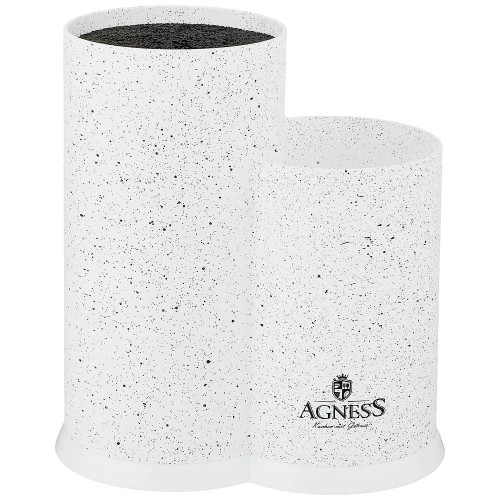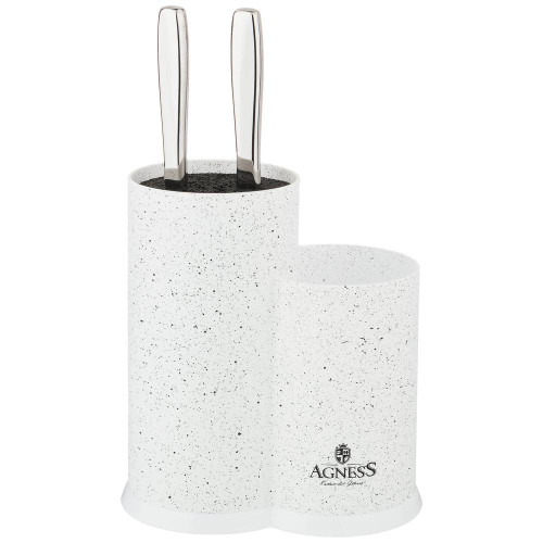 Подставка для ножей – необходимый аксессуар на каждой кухне. Подставка AGNESS с наполнителем легко и удобно решает проблему хранения ножей, защищая лезвия ножей от загрязнения. Дополнительный отсек можно использовать для хранения различных кухонных аксессуаров.