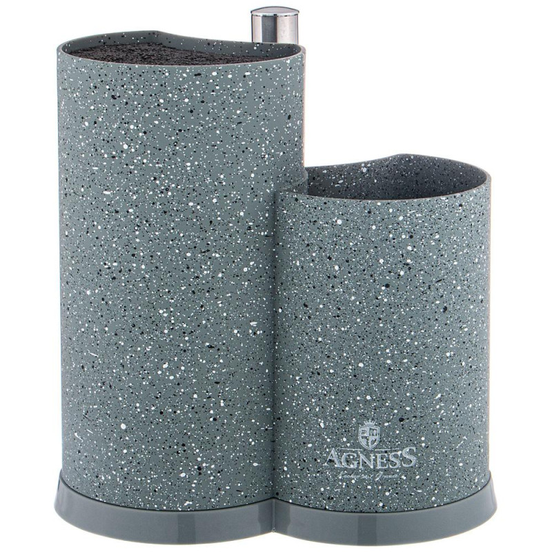 Подставка для ножей – необходимый аксессуар на каждой кухне. Подставка AGNESS с наполнителем и держателем для полотенец - это отличное решение для компактного хранения кухонных принадлежностей. Подставка легко и удобно решает проблему хранения ножей, защищая лезвия ножей от загрязнения. Дополнительный отсек можно использовать для хранения различных кухонных аксессуаров. Подставка для кухонных принадлежностей подходит для стандартных бумажных полотенец в рулонах.